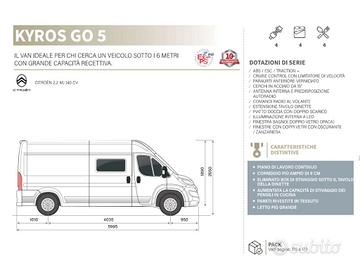 Tipologia: Camper - Van Carburante: Diesel Tipo di cambio: Manuale SPECIFICHE: - Lunghezza: 5,99 m - Posti viaggio: 4 - Posti letto: 4 - Cilindrata: 2.2 - Potenza: 140 CV ACCESSORI: - ABS / ESC / Traction + - Cruise control - Estensione tavolo dinette - Piatto doccia con doppio scarico - Illuminazione interna a Led - Finestra bagno - Zanzariera - Oscuranti plissetati - Piano di lavoro continuo - Pareti rivestite in tessuto - Riscaldamento Truma Combi 4 Diesel - Luci spot a Led sotto i pensili - Frigorifero a compressore 84 lt - Doppio letto matrimoniale posteriore - Letto superiore amovibile per uno spazio di stivaggio versatile e modulare - Toilette compatta con doccia integrata - Sedili girevoli che si integrano in cabina Eliscar è un concessionario ufficiale C.I. (CARAVAN INTERNATIONAL, GRUPPO TRIGANO) per Verona. Concessionario ufficiale HONDA MOTO - EMC - FOTON CENTRO USATO AUTO E MOTO Possiamo personalizzare il tuo finanziamento e permutare il tuo usato. PER RAGGIUNGERCI: uscita autostradale Sommacampagna (A4 MI-VE), subito a sinistra, direzione Verona. A 1,5 Km ci trovate sulla Vostra sinistra. Allestimenti ed accessori sono puramente indicativi e da definirsi in sede. Eliscar è un concessionario ufficiale HONDA MOTO per le province di Verona e Mantova. Concessionario ufficiale MAXUS - FOTON - C.I. (CARAVAN INTERNATIONAL, GRUPPO TRIGANO) - EMC - GREAT WALL CENTRO USATO AUTO E MOTO Possiamo personalizzare il tuo finanziamento e permutare il tuo usato. PER RAGGIUNGERCI: uscita autostradale Sommacampagna (A4 MI-VE), subito a sinistra, direzione Verona. A 1,5 Km ci trovate sulla Vostra sinistra. Allestimenti ed accessori sono puramente indicativi e da definirsi in sede. Il Rivenditore ELISCAR SRL