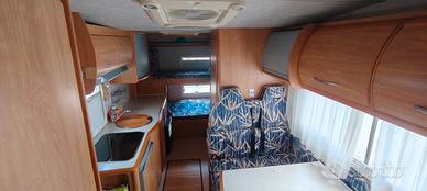 Vendo x conto di amico camper mansardato del 2002 motore 2400T.D. a catena con 110000 km. in ottime condizioni di meccanica, carrozzeria ed interni. Disposto con mansarda matrimoniale, dinette matrimoniale, letti a castello posteriori con garage a volume variabile, bagno grande con doccia separata. Accessoriato di stereo CD, antenna TV, inverter, pannello solare, tendalino ed altro. Tagliandato e gommato. PRONTO X PARTIRE. prezzo trattabile se si fa una trattativa seria e veloce.