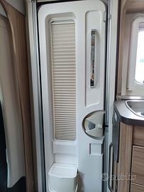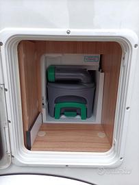 Portamaggiorata con vetro + Oscurante + Pattumiera integrata + zanzariera;Oblòpanoramico su cabina Skyroof; Oscurantiplisettati cabina di guida Remis.