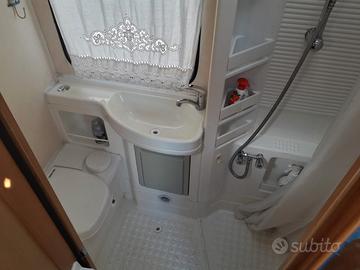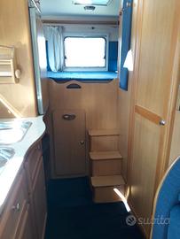 camper ducato 6 posti letto con letto matrimoniale in coda e in mansarda 150.000 km anno 2001 tutto tenuto molto bene allarme sulle porte grande gavone con porte da entrambi i lati finestrini elettrici zanzariere e oscuranti bagno con doccia pannello solare gancio traino, piedini di stazionamento, antenna TV, gradino elettrico portabici,tendalino, 4 oblò, cinghia fatta, sospensioni a aria, sedili girevoli batteria nuova x altre info contattatemi tel 3467846636 prezzo poco trattabile ottimo mezzo unico lavoro da fare paraurti posteriore da sistemare ma nulla di grave