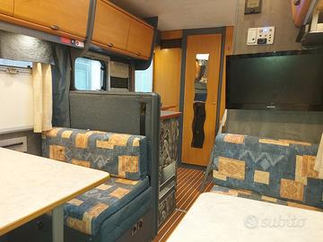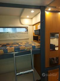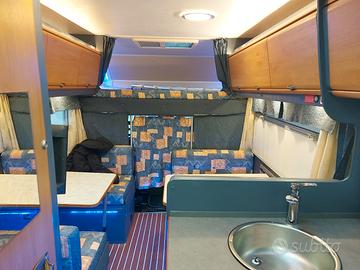 Vendo camper mansardato mod.C.I carioca 40 anno 2001,km 110000 circa,con cinghia di distribuzione cambiata da pochi km,appena fatta la revisione,cilindrata 2.8 tdi. Allestimento 7 posti letto,doppia dinette,frigorifero trivalente automatico sostituito da poco,pannello solare,stufa/boiler nuovo mod truma combi 6E,doppia alimentazione 220v e batteria,pannello truma cp plus,TV con dvd,regolatore gas e tubo gas nuovi,oscuranti e zanzariere nuovi,autoradio bluetoot, luci a LED,n.2 oblo panoramici montati da poco,veranda esterna,portabici 4 posti,telecamera retromarcia,booster per ricarica veloce batteria cellula,scalino elettrico,sigillatura esterna cellula rifatta da poco, nessuna infiltrazione. Vendo per inutilizzo,prezzo leggermente trattabile, astenersi offerte assurde e mitomani.