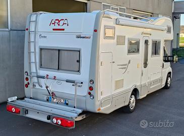 vendesi arca m716 GTL del 2011 con motore 3000 da 160 CV accessori: veranda da 4 metri, pannello solare da 140 watt, aria condizionata in cabina, condizionatore deumidificatore viesa del 2015, Cruise control, telecamera a colori per retromarcia, due batterie di servizio da 100 ampere con NDS manager, doppio serbatoio acque chiare e doppio serbatoio acque grigie, serbatoio portatile acque nere più wc nautico da 56 litri, porta moto con portata 150kg estraibile, termo ventola in mansarda, soffietti alko con manometro e compressore a bordo, cassaforte a combinazione e chiave, forno più scaldavivande, frigo grande, tutte le luci a led con colore blu notte, televisore da 21 pollici con DVD incorporato, pavimento a doppio fondo, parabola automatica seleco con decoder, attacco doccia esterno, sette posti letto e quattro posti omologati per il trasporto, doppia dinette di cui una a scomparsa, oscuranti remis in cabina, doppia coppia di zeppe livellanti, cavo corrente da 20 metri, gancio traino