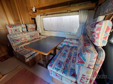 CARATTERISTCHE CELLULA: 6 posti in viaggio, 5 posti letto (2 mansarda, 2 dinette centrale, 1 dinette posteriore) tutti con topper e materassi comfort - sedili anteriori cabina girevoli - rivestimenti interni originali conservati e protetti. - Vento/Therm aggiuntivo potenziamento riscaldamento cellula - due oblò Turbovent - cucina a gas 4 fuochi – frigo trivalente Electrolux, riscaldamento Truma a gas - boiler acqua a gas.