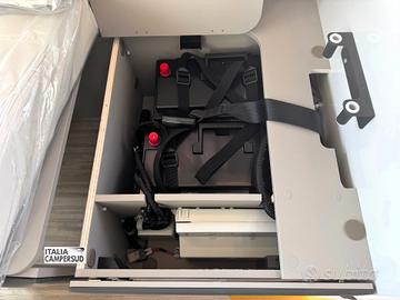 Accessori: Motorhome TOP Di Gamma Con 4/5 Posti Letto Totali Partendo Dal Basculante Matrimoniale Anteriore Una Zona Living Con Dinette Face To Face e Tavolo Centrale Con Sedili Cabina Girevoli Una Cucina Ben Attrezzata ed Infine Un Letto Nautico Centrale In Coda Regolabile In Altezza Ed Un Garage Con Portata 300 Kg Inoltre Un Bagno Con Doccia Separata E Doppio Pavimento Passante Telaio Al-Ko