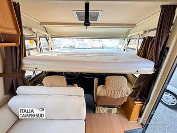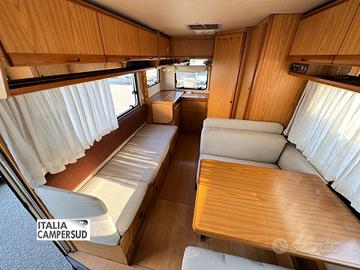 Motorhome Con 5 Posti Letto Totali Partendo Dal Basculante Matrimoniale Una Dinette Grande Con Tavolo Centrale Ed Un Divanetto Laterale Molto Ampio Una Cucina Ad Angolo Situata In Coda e Bagno Con Doccia