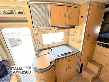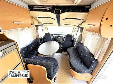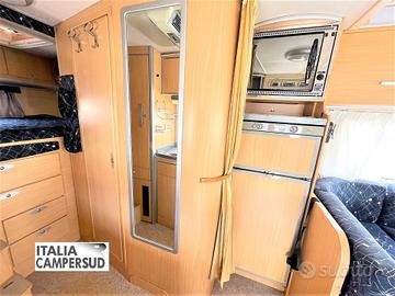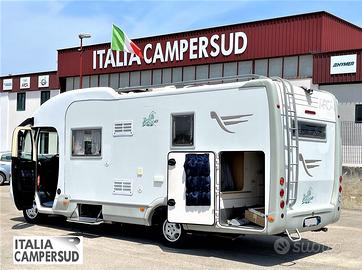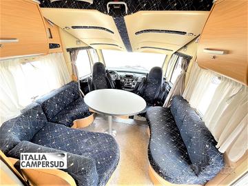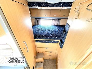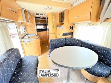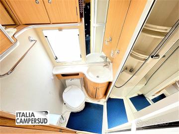 Accessori: Veranda, Scaletta esterna, Portapacchi, Luce Esterna, Clima Cabina, Clima Cellula, Retrocamera Con Autoradio, Doppio Serbatoio Acqua, Presa esterna Acqua e Gas, Bagno WC Speedy, Pannello Solare, Antenna Tv Dgt, Antenna Satellitare Auto, Oblò Panoramico, Forno, Frigo Grande, Cappa Aspirante, Bagno Con Doccia Separata
