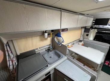 5 posti viaggianti (4 con cinture di sicurezza, 2 davanti e 2 sulla panchetta della dinette posteriore).