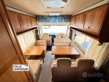 Motorhome Di Qualità con 7 Posti Letto e Doppia Dinette Una Grande Con Sedute Contrapposte ed Una Piccola Laterale