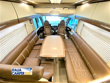 Meraviglioso Motorhome Di Classe Superiore Top Di gamma Con Letti Gemelli In Coda Trasformabili in Un Maxi Matrimoniale Ed Ampio Garage Una Dinette Enorme Con Tavolo Grande Centrale e Sedili Cabina Girevoli In Pelle, un Letto Matrimoniale Anteriore Basculante Elettrico Con Una Cucina Attrezzatissima e Spaziosa In Linea Infine Possiamo Trovare al Centro Del Camper Un Bagno Con Doccia Separata pari al nuovo