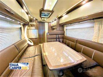Accessori: Veranda Elettrica, Portamoto Sawiko, Clima Cabina, Autoradio Doppio Din 10" Con Retrocamera, Clima Cellula Telair, Antenna Satellitare Automatica Teleco, Doppio Pavimento Passante, Scarichi Acque Chiare e Grigie Elettrici, Doppio Asse Telaio Al-Ko, Cambio Automatico 8 Rapporti, Impianto Con Tre TV Led 22", Sistema Di Riscaldamento Alde e Webasto, Maceratore Elettrico Con Doppia Cassetta Wc, Attacco Esterno Acqua e Gas, Vernice Ramata Metallizzata, Antifurto Gemini, Tappezzeria In Vera Pelle, Cassaforte, Pannello Solare, Cerchi In Lega 16", Impianto In Rete Con Inverter Onda Pura 2000w