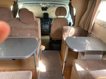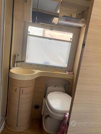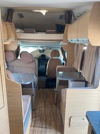 Dotato di doppia dinette, letti a castello in coda,grandi, frigorifero grande, 4 fornelli più forno, ammortizzatori ad aria, TV, inverter, 2 batterie per la cellula e 1 per il motore, pannello solare, doppio serbatoio acque, bagno con doccia separata, stufa a gasolio Webasto, telecamera posteriore, stereo con navigatore specifico per camper.sensori di parcheggio