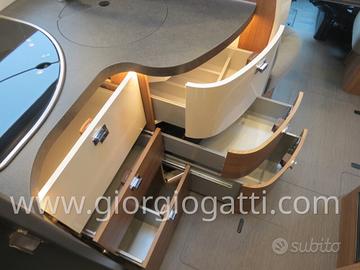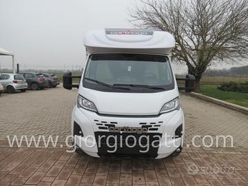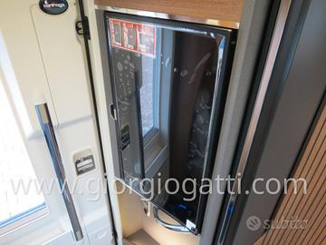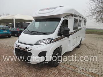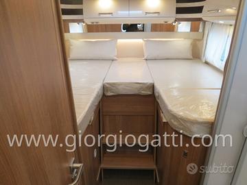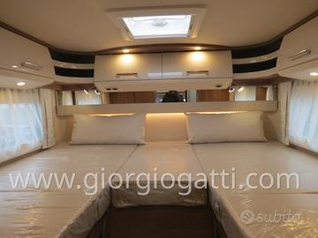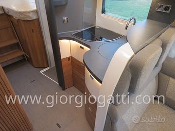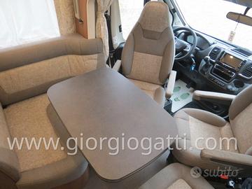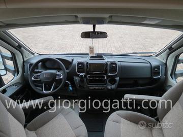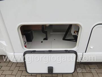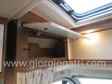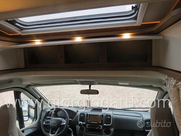 -Dotazioni accessorie presenti sul veicolo: Pack Base plus: (Presa USB nel pensile sopra il letto posteriore-predisposizione radio con antenna sul tetto e DAB+, altoparlanti)-Pacchetto Multimedia 32": (Smart TV a LED 32" per sistema di estrazione TV-supporti per TV 32" girevole 180° nella zona ingresso-sistema di retrocamera lente singola)-Pacchetto Telaio Plus (volante e pomello cambio in pelle tessile-strumento combinato con display a colori-volante multifunzione-climatizzatore automatico in cabina-stazione di ricarica induttiva per smartphone nella cabina di guida-abbellimento del cruscotto con griglie di ventilazione cromate-cerchi in lega 16" Fiat per telaio heavy in combinazione con il cambio automatico 8 rapporti)-Pacchetto Predisposizione (Predisposizione oblò con ventola elettrica-predisposizione impianto satellitare-predisposizione retrocamera (per camera a lente singola)-predisposizione impianto solare)-Chiusura centralizzata per porta cellula XL "premium two2.0"-Pacchetto di prese con prese aggiuntive (3 x 230 V, 2 x USB)-DuoControl CS con sensore anticollisione e funzione Eis-Ex-Stile nuovo-Massiccia porta scorrevole in legno davanti a camera da letto-Letto basculante elettrico anteriore, con oblò nel cupolino