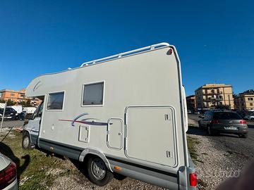 Vendo bellissimo Challege 183 120 mila km tagliandato perfetto in tutto tenuto maniacalmente pannelli solari aria condizionata bagno doccia separata riscaldamento autonomo 5 posti letto e 4 da viaggio doppio serbatoio acqua garage porta moto più porta moto esterno visibile a Roma.