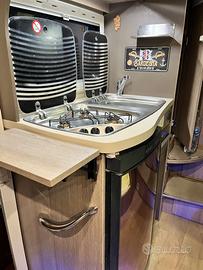 Lunghezza 5.99 Motore Ford 155 CV Omologato 5 posti Letto matrimoniale trasversale in coda e basculante un posto sopra la dinette. Un’altro letto si può ricavare dalla dinette abbassando il tavolo. Gavone molto largo e capiente con altezza regolabile fino a 120 cm. Riscaldatore a gasolio. Pannello solare Predisposizione doppia batteria Serbatoio acque grigie coibentato Presa esterna gas e acqua per doccino esterno Tendalino Allarme volumetrico e perimetrale Gemini Retrocamera Sigillature perfette Super maneggevole e facile da parcheggiare ovunque. Gomme nuove e tagliandi ok.
