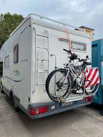 Omologato 6 posti a viaggiare e 6 posti a dormire,con una Lunghezza di 6,40 mt.Anno 2003 con 100.000km,tagliandato ad agosto 2023,bollato fino a febbraio 2025 e con revisione valida fino a giugno 2026.Per quanto riguardano gli accessori e optional della cabina:Vetri elettrici,specchietti regolabili elettricamente,chiusura centralizzata,sedili regolabili e reclinabili anche frontalmente,radio con antenna a vetro e cd,tendaggio completo per tutti i vetri,con coperture termiche interne a ventosa + protezione termica esterna per inverno.Divisorio scorrevole tra cabina e cellula in legno,barra di profondità a led,sensori di parcheggio e telecamera posteriore sotto paraurti con accensione di ogni elemento indipendente all'occorrenza.Frecce perimetrali aggiornate a led nel 2022.In cellula:Sigillatura completa eseguita ad agosto 2023 assieme al controllo delle infiltrazioni.Matrimoniale in mansarda, 2 letti a castello in coda e altro matrimoniale trasformabile in dinette.Reclinando il letto inferiore a castello è possibile trasformare il gavone posteriore in un garage molto capiente, ci sta una moto.Aria condizionata e pompa di calore telair, televisore con braccio orientabile ed antenna telescopica, forno microonde, frigo trivalente con congelatore integrato,boiler e stufa truma,con la canalizzazione dell'aria in ogni ambiente,compreso il garage. Grande armadio,molto capiente,ed un gavone ricavato dalla seduta dei passeggeri,ottimo per trasportare oggetti ingombranti.Tutte le finestre sono dotate di oscuranti e zanzariere,,turbovent in coda,scalette in alluminio,cucina a 3 fuochi,alloggio per 2 bombole del gas,con rubinetto per deviatore ed attacco rapido. Aggiornato ed integrato con luci led,tendalino da 3,5mt,luce esterna, piedini stabilizzanti,gancio traino omologato,lucidato completamente questa estate.