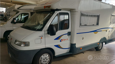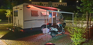 Camper semintegrale cilindrata 2.8Jtd con 93300km del 2002 montato su fiat ducato posti letto 4 posti viaggiò 4 lunghezze 7.30 mt incluso porta moto, senza portamoto 6,80 largo 2.20 mt. Il camper si presenta in buone condizioni generali. Tagliando eseguito con sost.pompa acqua cinghia olio e tutti i filtri .Soffioni Alko che danno più stabilità e morbidezza su asfalto sdruciolevole e dossi. Il camper è equipaggiato con portamoto fino a 160kg. Omologato sul libretto. Tendalino fiamma 45 e forno. Aria condizionata in abitacolo mentre in cellula turbovent, in più alla base dell'armadio c'è un'altra dispositivo ché riscaldata la cellula quando il motore è in moto, oppure rinfresca con aria a temp. Ambiente. Pannello solare, prese usb, bagno con doccia separata,doppio serbatoio acque chiare retrocamera, caldaia acqua e stufa Truma tutt'uno, frigo trivalente, vano portabombole 2 da 10kg.