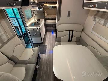 Dotazione camper per vivere in libera, pannello fotovoltaico, batteria al litio ed inverter, 2 serbatoi acque chiare , deumidificatore Viesa, antifurto perimetrale e volumetrico, doppia retrocamera, ampio garage con archetto e cinghie per ancoraggio moto o bici, oscurante plissettato cabina, clima cellula, 2 bombole in vetroresina, 2 tv, 2 letti matrimoniali, bagno con ampia doccia, tenda esterna.