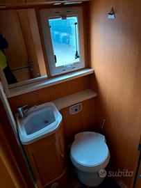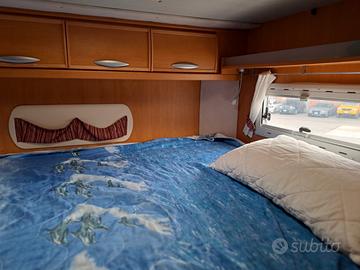 Il camper è un mansardato con letto matrimoniale in coda, garage ampio (può contenere 4 biciclette o 2 scooter di dimensioni medie), configurazione dinette avanzata con sedili girevoli e divano laterale, cucina 4 fuochi, frigorifero 150 lt con gongelatore separato, bagno con doccia separata, aria condizionata cabina, boiler acqua calda a gas, riscaldamento WEBASTO (alimentazione gasolio).