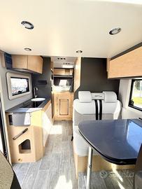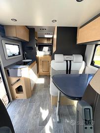 NUOVO GIOTTILINE COMPACT CX60: 5,99 metri di libertà da vivere. Solo 10 cm più largo di un van, ma con ben 4 comodi posti letto! Fiat Ducato 2200 CC, 140 hp Lunghezza 5,99 m - Larghezza 2,15 m - Altezza 2,88 m Passo corto Cruise Control ESP + Traction+ Hill Holder e Hill Descent Specchietti elettrici e riscaldabili Attacchi Isofix Start & Stop 4 posti viaggio - 4 posti letto Letto trasversale posteriore 202/198x131 cm Letto basculante elettrico singolo 182x80 cm Dinette convertibile in letto con kit cuscini e doghe Bagno vario Grande armadio sotto al letto posteriore Pack Privilege: Paraurti verniciato, fari fendinebbia, Skyview, radio 6.8" con Apple CarPlay e Android Auto, retrocamera HD, porta cellula con chiusura centralizzata, foderine cabina coordinate. Pack Sport: Cerchi in lega 16" bicolore e volante in pelle Porta garage sx 46X81 cm | dx 65X110 cm Frigorifero a compressore automatico 140L Riscaldamento Truma Combi C 4000 a gas con CP Plus Serbatoio acque grigie riscaldato Garage con portelloni laterali Gradino esterno elettrico Luce esterna a LED Zanzariera porta cellula Garanzia 7 anni infiltrazioni 2 anni garanzia meccanica Prezzo di listino: €65.366 chiavi in mano