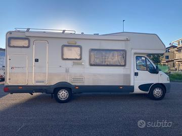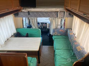 Vendo camper mansardato, tagliando fatto a luglio 2025, cinghia cambiata a 70000 km, stufa truman cambiata, batteria motore nuova, televisione nuova, pannelli solari, inverter, prossima revisione luglio 2026, luci interne led e prese usb zona letto nuove, retrocamera, portabici, pneumatici 4 stagioni, 7 posti letto, 5 viaggianti con cintura, doppia dinette, frigo con freezer, 2 serbatoio d'acqua, wc chimico con due serbatoi, pannelli solari, 3 obló tetto. Lunghezza 7,2 metri, guidabile con patente B. Tendalino originale.