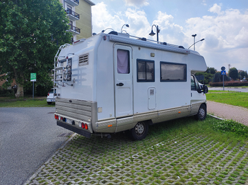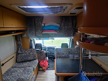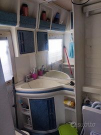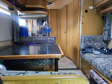 Camper usato ma ben tenuto. Pannelli solari, porta bici esterno e posteriore. Scarico nautico. Serbatoio acque pulite 100 litri. No clima!. Gavone enorme posto sotto il pavimento . Riverniciato da poco nelle parti bianche. Riscaldamento , forno a gas. Frigorifero trivalente ( 12 volt, 220 volt e a gas). Motore Ducato 2800.