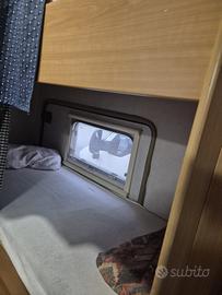 a, letti a castello in coda laterale, dinette letto singolo, dinette letto matrimoniale).