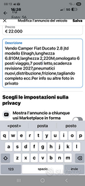 Camper elnagh doral anno 2000 si accettano permute di auto e fuoristrada di mio gradimento . €22.000 in ottime condizioni finanziabile primo contatto con whatsapp telef 3491349686
