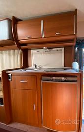 L'ambiente interno è arredato con mobili in legno con tanti scomparti per stoccare tutto quello che serve in viaggio,le finestre sono dotate di tende ,zanzariere ed oscuranti .