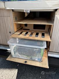 - Scaffalatura selfmade con ripiani scorrevoli ad estrazione totale ricavata nel tunnel posteriore ed eventuali contenitori in plastica.
