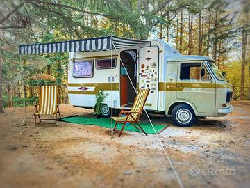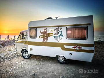 Camper Fiat 238 cilindrata 1.4 del 76, km 30.000, 3 posti letto,tagliando fatto quest'anno, realizzato da AlfaCasa Verona, con certificazione che lo classifica come mezzo unico/artigianale, targa oro ASI e targa oro RIVAS. La cabina è un monoblocco coibentato in resina (e per questo senza alcuna infiltrazione)con 6 finestre. Completo di selleria originale e selleria nuova per utilizzo quotidiano. Interni in ottime condizioni, bagno chimico, tendalino Bear con travetti in acciaio. Pannello solare nautico sul tetto. Selleria anteriore originale in ottime condizioni e protetta con rivestimenti tipo jeans. Mezzo da amatore, viene venduto completo di documentazione originale e certificazioni storiche. Per le sue caratteristiche estetiche il mezzo si presta anche a trasformazioni commerciali di qualsiasi genere.