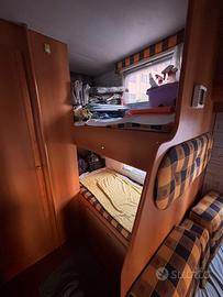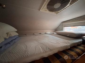 95.000 km, cambio manuale. In dotazione 2 bombole a gas, pannello solare, doppio serbatoio, due opzioni di riscaldamento: a gas e a gasolio, due turbo vent, boiler acqua calda a gas, 6 posti letto, porta biciclette.