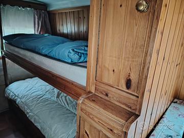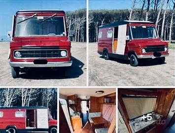 Per cambio progetto vendo Ford A0406 modello unico e introvabile del 1977. Motore Diesel 2400. Pannelli solari. Vari lavori fatti. Frigo, bagno, letto a castello, dinette, fornelli. Manca riscaldamento che c'è ma è da montare. Utilizzabile da subito anche se da completare (aggiustare specchietto destro e cintura di sicurezza del conducente) Pezzi già pronti, solo da montare. Revisione fatta fino al 2026. Omologato Camper patente B. Interni in legno, 4 posti letto, cucina, frigo e bagno. Per amanti del genere. Prezzo trattabile