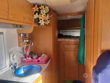 vendo camper kentuchy corral 4 Ford transit anno 2007, km 160.000, cambio manuale 6 marce con cruiser control, doppio serbatoio acque chiare 2 cassetti wc, pannello solare 120amp, antenna TV e TV, veranda, clima abitacolo, clima cellula, frigo grande con freezer trivalente, piano cottura 4 fuochi con forno gas, doccia grande separata, 6 posti viaggio omologati, 6 posti letto, garage grande gia rinforzato con possibilità di caricare lo scooter, riscaldamento webaston, gommato nuovo e batterie nuove. prezzo 23.000 tratt