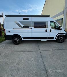 Vendo Camper furgonato pari al nuovo, tenuto maniacalmente. Fiat Ducato 2.3 Mj 130 CV Anno: 2020 Km 29.927 Furgonato Compatto con 2/3 posti letto totali. Posteriormente è presente un letto matrimoniale e nella parte anteriore una zona living con dinette e tavolo a parete con sedili cabina girevoli. Una cucina ben attrezzata ed infine un bagno ampio con doccia. Lunghezza: 5.995 Mt Larghezza: 2.050 Mt 4 Posti Omologati In Viaggio Accessori: Sospensioni posteriori ad aria regolabili, Pannello solare fotovoltaico, Block Shaft antifurto, Veranda, Gradino elettrico, Retrocamera, Autoradio con display, Comandi Al Volante, Clima Cabina, Cerchi In Lega, Zanzariera Porta D'Ingresso, Riscaldamento Truma Combi Diesel, Frigo Trivalente Da 80 Lt, portabici Thule, piastre di trazione, catene da neve.