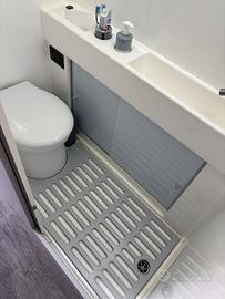 Oblò panoramico sulla dinette, oblò in bagno, oblò sul letto in coda, tutti gli oblò sono illuminati a led, 3 pannelli solari monocristallino da 100W, doppie batterie al Litio da 100 Amp, carica batterie e centralina CTE, centralina aggiuntiva luci servizi gestibile con app sul telefono, doppio televisore, uno in coda e uno sulla dinette, a scomparsa, bagno in porcellana nautico, il bagno è tutto rivestito in Vetroresina bianco lucido e il piatto doccia è realizzato in Vetroresina, serbatoio acqua potabile da 100lt, serbatoi di recupero integrati sotto il telaio, impianto audio con stereo 10" e navigatore integrato, frigo alto a compressore, gradino elettrico a scomparsa, tenda esterna Fiamma, il furgone è coibentato con doppio isolamento, ARMAFLEX adesivo e materassino in FIBRA di Poliestere da 50 mm di spessore. Altre info in privato.