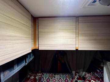 Sotto i materassi panche contenitore lato dx e sx. Panca posteriore con serbatoio