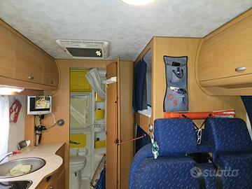 Vendo Camper Joint 2000jtd, 66.000 km, interni perfetti. Molti accessori montati quali: -aria condizionata Dometic in cellula tramite condizionatore a soffitto (dove si dorme). -aria condizionata di serie in cabina che manda aria anche in cellula grazie ad apposita tubazione. -scambiatore automatico per le due bombole gas presenti (permette di non rimanere mai senza riscaldamento poiché finita una bombola (per esempio di notte) in automatico passa alla seconda bombola piena) -Ammortizzatori come nuovi ad aria montati nel 2022 che rendono il Camper decisamente più stabile. - separè cellula/cabina in polistirolo rivestito -tappezzeria ottima senza buchi - Rinforzo letti a castello - Doccetta doccia nuova -portabici -telo invernale copri/cofano per la neve - Telo copri camper comprato da ditta specializzata di Livorno In soli 620 cm il Joint E 35 dispone di sei posti letto e sei posti a sedere omologati. Camper maneggevole, consumi bassi, motore ottimo per un camper così corto. Graffio al paraurti posteriore, cofano anteriore sfogliato. Prezzo Trattabile previo contatto telefonico . Gabriele