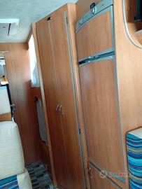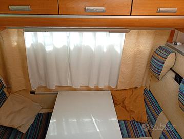 vendo per poco utilizzo camper joint spaceline così composto: -mansarda in monoscocca con doppia finestra e letto con doghe in legno rialzabile. -doppia dinette . - letti a castello longitudinali. - cucina ad angolo fuochi. - forno a gas. - frigo grande trivalente. - riscaldamento Truma combi. - porta moto linnepe 150kg. - pattumiera e finestra sulla porta d'ingresso. clima motore e clima cellula telair. - pannello solare. - finestre seitz. motore 3000 Power 160cv .