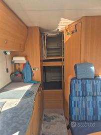 Vendo knaus mansardato Sport Traveller. Anno 2005 km 170000 con motore 2.8 td, 6.16 di lunghezza, più porta moto omologato a libretto. Gomme 2025 estive ,batteria motore e abitacolo nuove. 6 posti viaggio 6 letto così disposti: Letti a castello in coda con possibilità di alzare letto inferiore quindi garage capiente variabile in altezza. Bagno con doccia incorporata, cucina con piano 3 fuochi e frigo trivalente , boiler acqua calda, serbatoio 100 litri. stufa truma. No aria condizionata. Accessori : retrocamera, panello solare da 110w, tendalino, sospensioni ad aria, piedini stazionamento manuali,antifurto. Seconda proprietaria da 10 anni. Acquistato con 120000 km. Tenuto sempre in rimessaggio. Compatto, passo corto quindi facile e maneggevole da parcheggiare pronto all'uso. Lavori effettuati internamente Oblò maxi e oblò 40 x40 cambiati. Prova infiltrazioni ok . Visibile in rimessaggio a Druento (to) Contattare tramite msg. Prezzo 23000 trattabili.