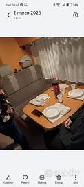 Per passaggio ad altra tipologia, vendo knaus del 2004 , cilindrata 28oo, con 80700km. Omologato per 5 posti viaggio e 6 posti letto. 2 letti castello posteriori da una piazza e mezza ciascuno, matrimoniale in mansarda, 2 posti letto ricavabili dalla dinette. Bagno con doccia separata con porta scorrevole, 2 serbatoi acque, vano e attacco per 2 bombole gas, frigo trivalente 250 lt, forno Garage con doppio portellone e doppio pavimento trasversale in tutto il camper, portabici 3 posti, riscaldamento Truma combi gas con aria canalizzato, oblò panoramico grande elettrico, tendalino con luce esterna led, luci interne led, autoradio, vetri elettrici, clima in cellula nuovo, stacca batteria, sedile passeggero girevole, pannello solare, TV con antenna terrestre, cucina gas 3 fuochi, attacco esterno per doccetta acqua e gas. Il camper non necessita di lavori, è pronto a partire. Prezzo 30000 trattabile