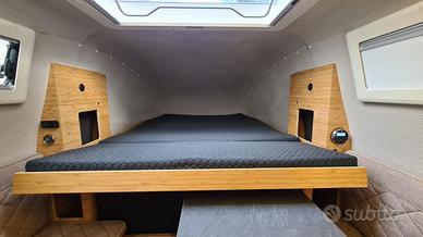 Questa è la nostra seconda capsula premium con bagno, angolo cottura e letto largo 140 cm. La capsula è riscaldata da Webasto, ha un serbatoio d'acqua da 60 litri, un pannello solare da 180 W, una tenda da sole, un ampio lucernario, zanzariere su ogni finestra, illuminazione a LED completa all'interno e all'esterno e una doccia esterna. Il prezzo si intende per la sola capsula. Può essere acquistata anche in kit con un Fiat Fullback 2.4.