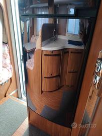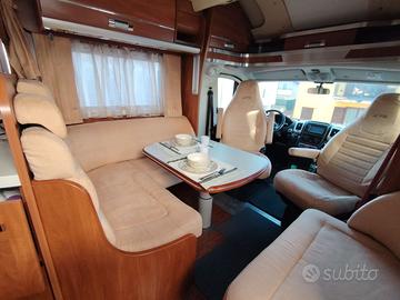 camper semintegrale patente C 42500 kg con clima cellula 150 cv gancio traino gavone da 250 kg 2 batterie servizi nuove lenta scarica doppio pavimento riscaldato frigo grande forno a gas parabola pannello fotovoltaico 6 posti letto 5 posti viaggio gomme michelin camping