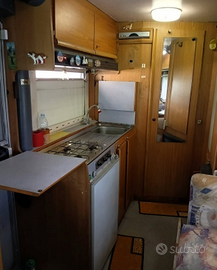 Specifiche Tecniche e Manutenzione * Motore: 2.5 TD (Turbo Diesel). * Chilometraggio: 125.000 km (il motore è stato sostituito). * Anno: 1989. * Dimensioni: Lunghezza di 5,98 metri. * Revisione: Eseguita recentemente ad Aprile 2025. * Stato generale: Tenuto benissimo e, punto fondamentale, non presenta infiltrazioni. Dotazioni e Comfort * Posti letto (4 totali): 2 sulla panca e 2 sul letto basculante. * Bagno: Doccia con vano separato (una rarità per i modelli più datati, molto comoda). * Cucina e Riscaldamento: Frigo trivalente e stufa Truma sostituiti di recente, descritti come pari al nuovo. * Autonomia Idrica: Presenza di due serbatoi dell'acqua supplementari. Accessori e Migliorie * Meccanica: Servosterzo e sospensioni pneumatiche anteriori (migliorano notevolmente la guidabilità). * Batterie: Sia la batteria dei servizi che quella del motore sono state appena sostituite. Pannello solare. * Pneumatici: 4 gomme Michelin in condizioni "semi nuove". * Extra: Portabici robusto.