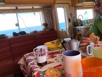 Camper Mansardato ARCA GLT 715 Pari al nuovo come in foto. Fiat Ducato 2800. Cellula ARCA, 7 posti letto, 3 ampie finestre zona giorno e lettino posteriore con 1 finestra grande, lettino superiore con finestrino e scaletta di risalita, finestrino bagno più oblò con ventola aspirazione e ventilatore in cabina doccia separata, oblò cucina con ventola aspirazione e ventilatore, finestrino porta ingresso, tutti i punti luce con oscuranti termici e zanzariere, mobiletti, portabottiglie, pattumiera. Oblò panoramico centrale, 3 finestre in mansarda, + oblò panoramico, il tutto lo rende luminosissimo e arieggiato anche in estate. Coibentazione 8 centimetri per protezione clima freddo o caldo. Tetto calpestabile, con scaletta di risalita. Doppio serbatoio acqua potabile 220 lt, tendalino, antenna Tv + TV, 2 pannelli solari, wc europeo, con tanica + doppio serbatoio svuotamento acque grigie, cabina doccia separata, doccetta esterna, porta bici a 4 posti, frigo grande, forno, doppia dinette, gavoni sotto dinette apribili da interno e da esterno, mobiletti e ampi armadi e ampio gavone posteriore sotto lettino, sistema riscaldamento e acqua calda Truma-Combi. Pneumatici Estate Inverno. Per qualsiasi informazione contattare 3395494416