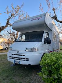 Vendo Camper Challenger 151 Anno 2000, Motore FIAT 2.8 idTD, 6 metri. Tagliandi regolari, cinghia distribuzione cambiata, revisione effettuata nel 2025, gomme in ottimo stato. Trattato molto bene, normali segni di usura, no infiltrazioni, siliconature controllate e rifatte regolarmente. Dotato di aria condizionata in cellula abitativa, frigo trivalente, stufa a gas, boiler acqua calda a gas, impianto elettrico con inverter, tendalino Fiamma nuovo(cambiato nel 2024), autoradio vivavoce bluetooth, portabici. Compreso fornisco telo copri biciclette e telo copricamper per rimessaggio. Omologato 6 posti a sedere, 6 posti letto(2 in mansarda, 2 in dinette, 2 letti singoli a castello). Piano cucina comodo e spazioso, bagno con doccia separata, pronto per partire.