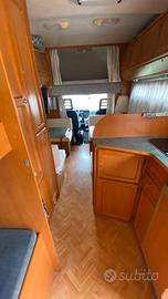 7 posti letto, DOPPIA DINETTE, bagno capiente con doccia, tappezzeria con cuscini e materassi rifatti da un anno, tendalino nuovo, climatizzatore cellula caldo/freddo con inverter (funzionamento anche in viaggio) con 2 anni di vita, boiler Truma per riscaldamento e acqua sanitaria, n.2 serbatoi acqua, grande garage quando si tira su uno dei letti a castello, portabiciclette, n.2 televisori con DVD, antenna ed infine pannello solare. Tendalino nuovo un anno di vita.