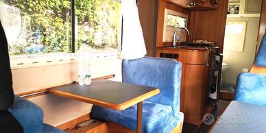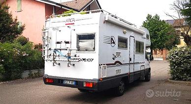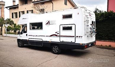 Camper mansardato ARCA America 407, lunghezza 7 mt, patente B, 6 POSTI VIAGGIO OMOLOGATI, 7 posti letto, doppia dinette, doppio serbatoio acque chiare, doppio (Speedy ARCA) acque nere, cuscinerie materassi e topper nuovi, moquette a pavimento ARCA, cucina 3 fuochi, turbovent, ampio bagno con doccia, riscaldamento Truma 5000 a doppio bruciatore e ventilazione canalizzata, veranda esterna, doccia esterna, fari ausiliari, lampade anteriori LED. Meccanica ducato maxi 2,8 TD, motore pompa e distribuzione nuovi in garanzia ,consumo medio 11 km/L., sedili confort con braccioli, Navi Garmin e retrocamera Vechline con telecamera a infrarossi. Assetto nuovo con ammortizzatori, molle e balestre maggiorati. Freni nuovi, gomme nuove. cerchi MAK in lega. Camper particolarmente adatto a famiglie. Solo seriamente interessati