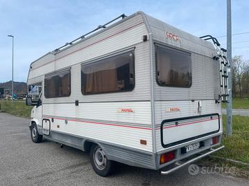 Vendo camper mansardato Arca Freccia 400 su base Fiat Ducato 2.5 del 1992 con 157.000km Omologato 5 posti Revisione valida fino a ottobre 2026 Tagliando, 4 ammortizzatori nuovi e verifica generale della meccanica eseguiti da pochi km Servosterzo e vetri elettrici Gomme al 70% Cellula abitativa in ordine con interni originali e in ottime condizioni. Nessuna infiltrazione. Sedile passeggero con base girevole. Pavimento in PVC appena rifatto. Impianto elettrico in perfetta efficienza e dotato di pannello solare. Compresi oscuranti termici e teli isolanti per gli oblò. Antenna TV e televisore presenti. WC nautico, tendalino esterno ampio, tutte le utenze acqua, riscaldamento e gas funzionanti. Frigorifero trivalente. Presenti alcuni accessori e ricambi. Vendo per cambio tipologa.. PREZZO TRATTABILE
