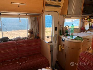 Pari al nuovo come in foto. Fiat Ducato 2800. Cellula ARCA, 7 posti letto, 3 ampie finestre zona giorno e lettino posteriore con 1 finestra grande, lettino superiore con finestrino e scaletta di risalita, finestrino bagno più oblò con ventola aspirazione e ventilatore in cabina doccia separata, oblò cucina con ventola aspirazione e ventilatore, finestrino porta ingresso, tutti i punti luce con oscuranti termici e zanzariere, mobiletti, portabottiglie, pattumiera. Oblò panoramico centrale, 3 finestre in mansarda, + oblò panoramico, il tutto lo rende luminosissimo e arieggiato anche in estate. Coibentazione 8 centimetri per protezione clima freddo o caldo. Tetto calpestabile, con scaletta di risalita. Doppio serbatoio acqua potabile 220 lt, tendalino, antenna Tv + TV, 2 pannelli solari, wc europeo, con tanica + doppio serbatoio svuotamento acque grigie, cabina doccia separata, doccetta esterna, porta bici a 4 posti, frigo grande, forno, doppia dinette, gavoni sotto dinette apribili da interno e da esterno, mobiletti e ampi armadi e ampio gavone posteriore sotto lettino, sistema riscaldamento e acqua calda Truma-Combi.
