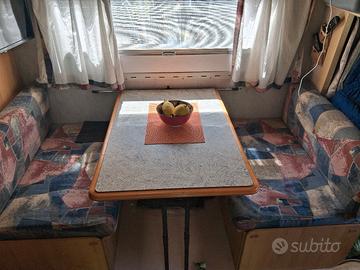 motorizzazione ducato 2500TDI affidabile veloce e parco nei consumi fatta distribuzione pompa acqua freni e tagliando completo a 135000km cambiate tutte le guarnizioni fatte sigillature assolutamente nessuna infiltrazione ,frigo electrolux trivalente nuovo materassi ortopedici pannello solare aria condizionata con pompa di calore Telair silent plus ,gancio di traino ,finestre seiz nuove oblo' a tetto nuovo,gomme nuove multistagione sedile passeggero girevole ,chiusura con tende termiche scorrevoli interno cabina,portabici,tendalino fiamma 45,impianto e TV smart con DVD,batteria agm 100watt scarica lenta per servizi,pronto a partire e affrontare qualsiasi viaggio
